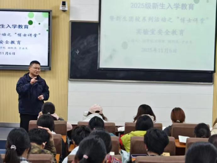 (本网讯 卫赟)11月6日,化学化工学院2025级新生入学教育暨新生团校系列活动之“博士讲堂”第二讲在教四楼T2教室开讲。此次讲座由该院副院长于永生主讲,以实验室安全为核心,为全体新生带来一堂深刻而实用的专业思想教育课。