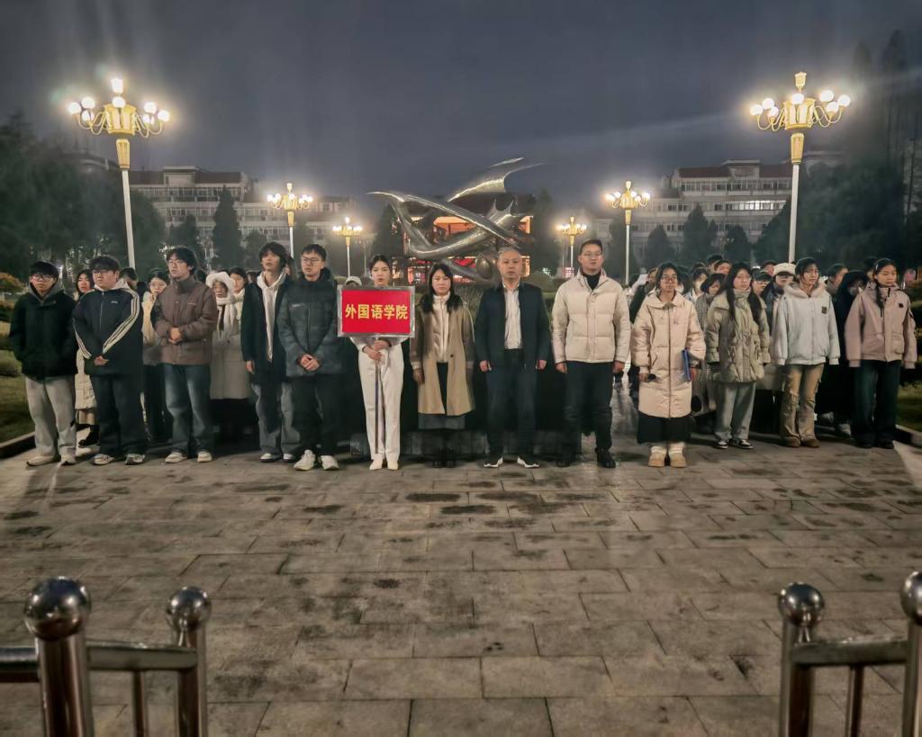 为增强学子爱国情怀,笃行强国之路,12月22日,外国语学院在明德广场举行“薪火相传五十载 笃行不怠强国路”主题升国旗仪式。该院党委副书记高彦伟,辅导员赵鹏举、王雨共同出席此次仪式。